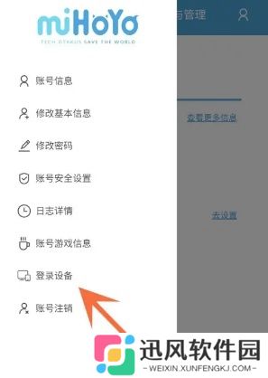 3、然后在左侧弹出来的页面中找到并点击登录设备。